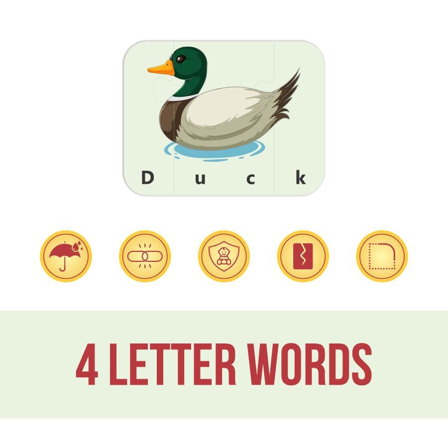 • Vocabulary Enrichment: Introduces essential four-letter words, building a strong foundation for early reading and spelling.