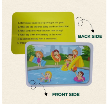 The Picture Description Cards by SpeechGears are a powerful speech and language development tool designed to help children improve their communication, observation, and storytelling abilities. Through engaging visual scenes and guided prompts, children learn to describe what they see, build meaningful sentences, and express ideas clearly.