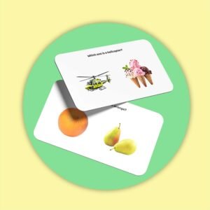 • Descriptive Play: Encourage the use of adjectives by asking about colors, sizes, or emotions shown in the cards.